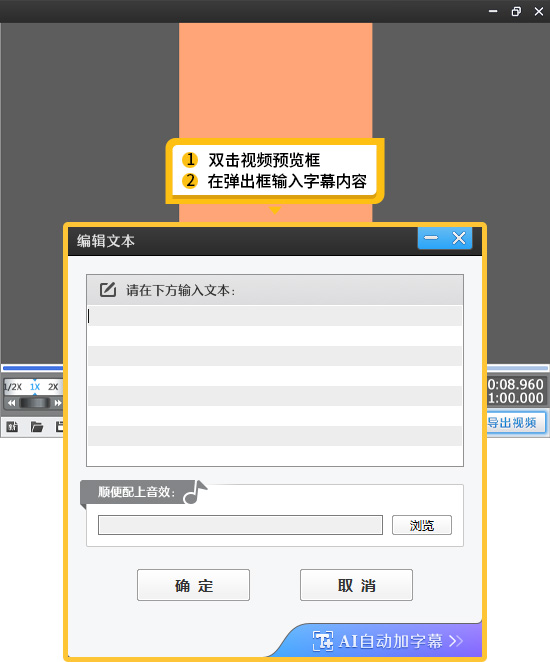 为了让你的视频更加完整、有信息性,你可以给视频添加字幕。点击“字幕特效”面板,然后双击视频预览框,就可以在弹出的对话框中输入字幕内容了。你可以为视频配上标题、片名等字幕内容,让观众更好地理解你的视频主题。