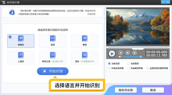 语音识别:软件会自动识别视频中的语音,并将其转化为文字。识别完成后,字幕会显示在视频预览窗口中。